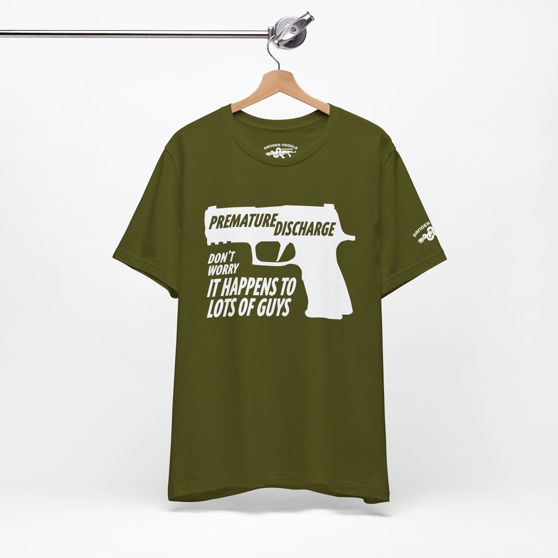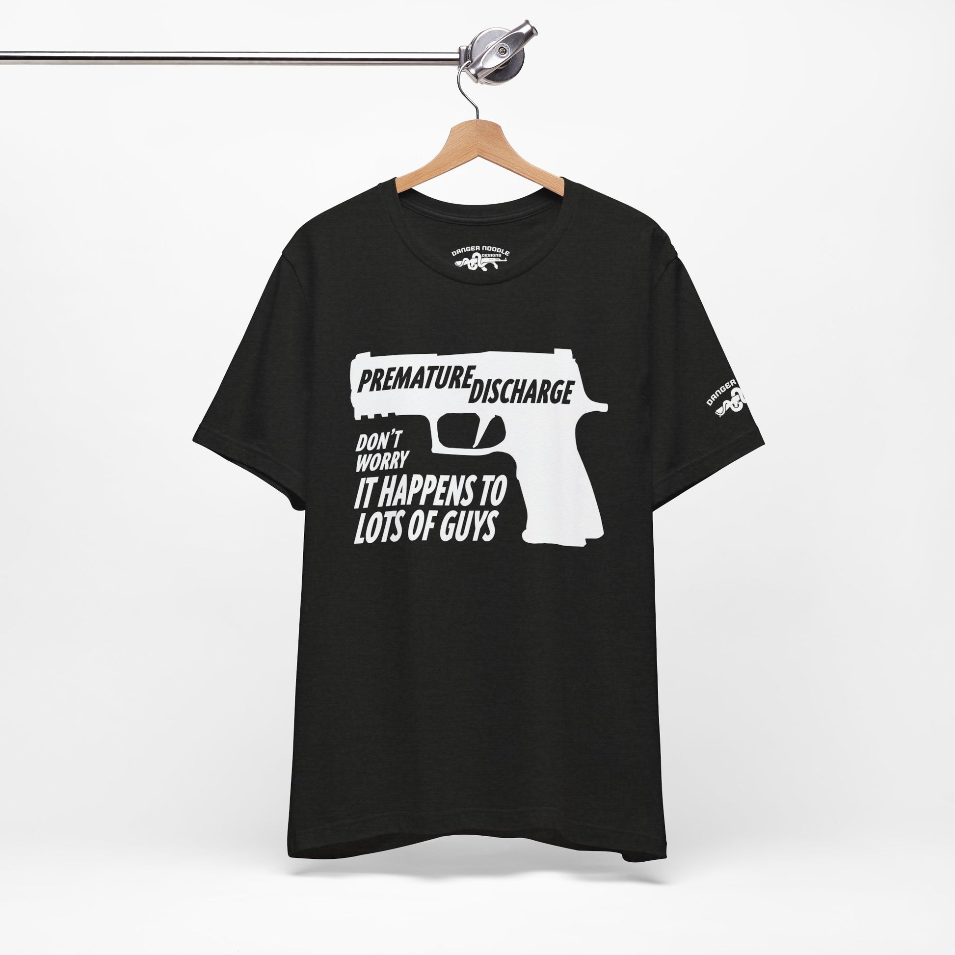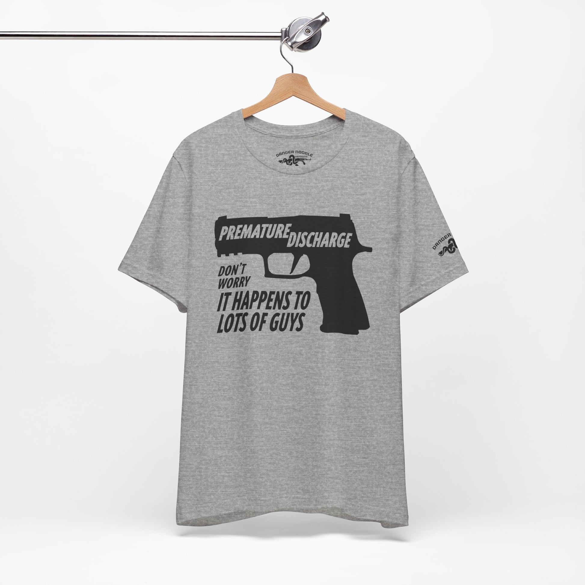 Sometimes things...fire off without warning. This shirt is a nod to those 'accidental discharges' nobody asked for but everybody's heard about. No need to point fingers - if you know you know. Great gift for anyone still carrying that which shall not be named.