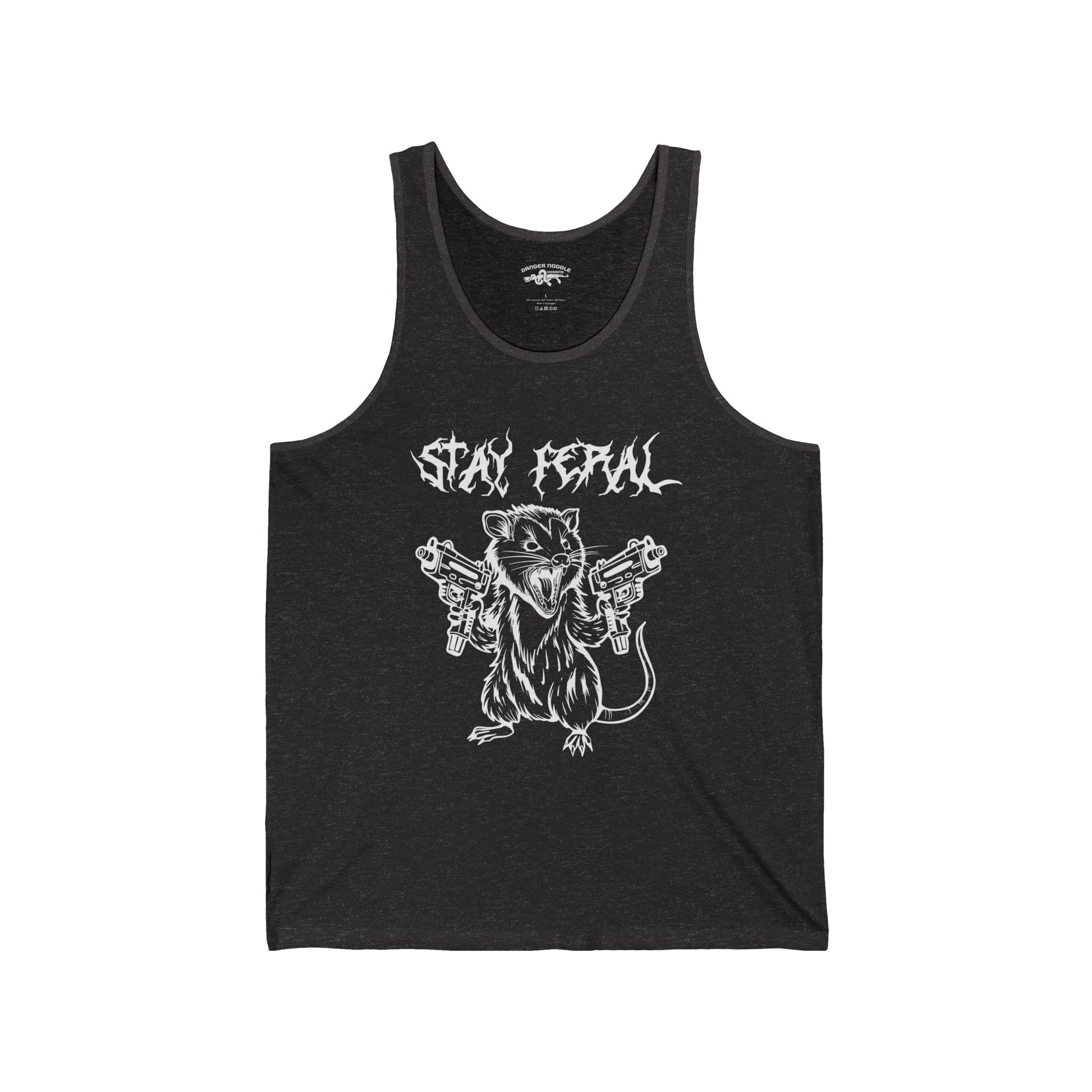 This tank features our battle-hardened trash goblin who is clearly over everyon's nonsense. It's a rallying cry for the wild ones who thrive in chaos, scream into the void, and still somehow get shit done.